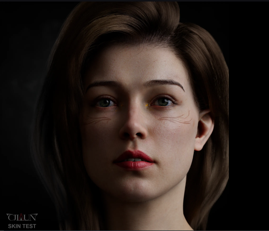 此外,该作品的另一个绝妙之处在于对不同部位皮肤纹理的刻画。不同部位的皮肤设计了独特的纹理贴图,使角色更加真实、更具魅力!做过写实类角色的小伙伴都知道,材质贴图的理解在创作中是一个巨大的挑战。